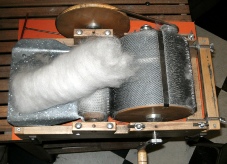 The carded fiber is then spun into a yarn or "singles" which will be stored until all the fiber is spun. I then take 2 strands and spin them together, this is called plying. When all the yarn is plied, I skein the yarn, wash it and set the twist. When dry, I weigh it. The finished yarn weight is how your fee is calculated.